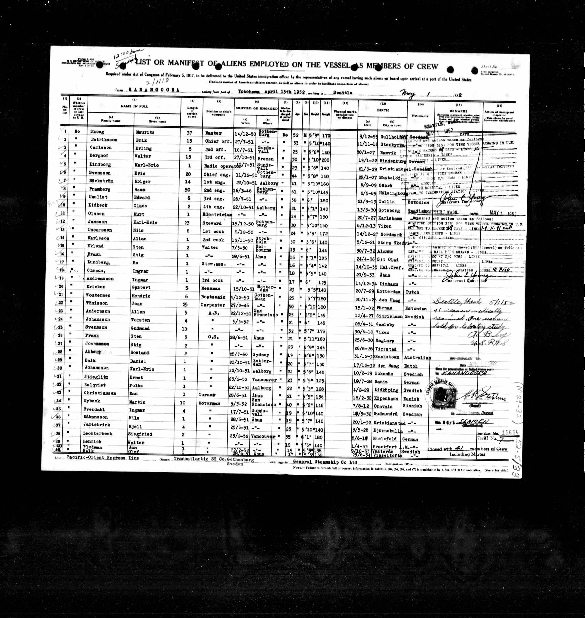 Död Ombord på fartyg. 1954-11-05. |